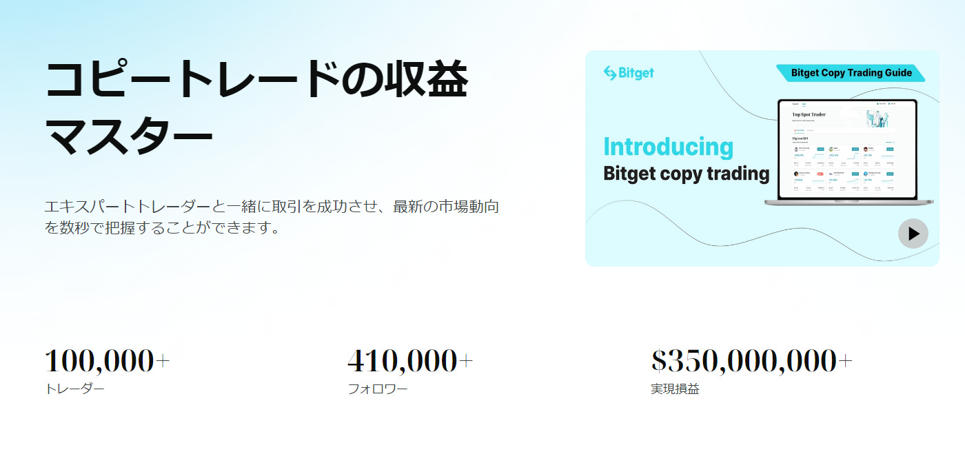 Bitgetのコピートレード機能は、プロのトレーダーの取引をそのままコピーできる機能です。